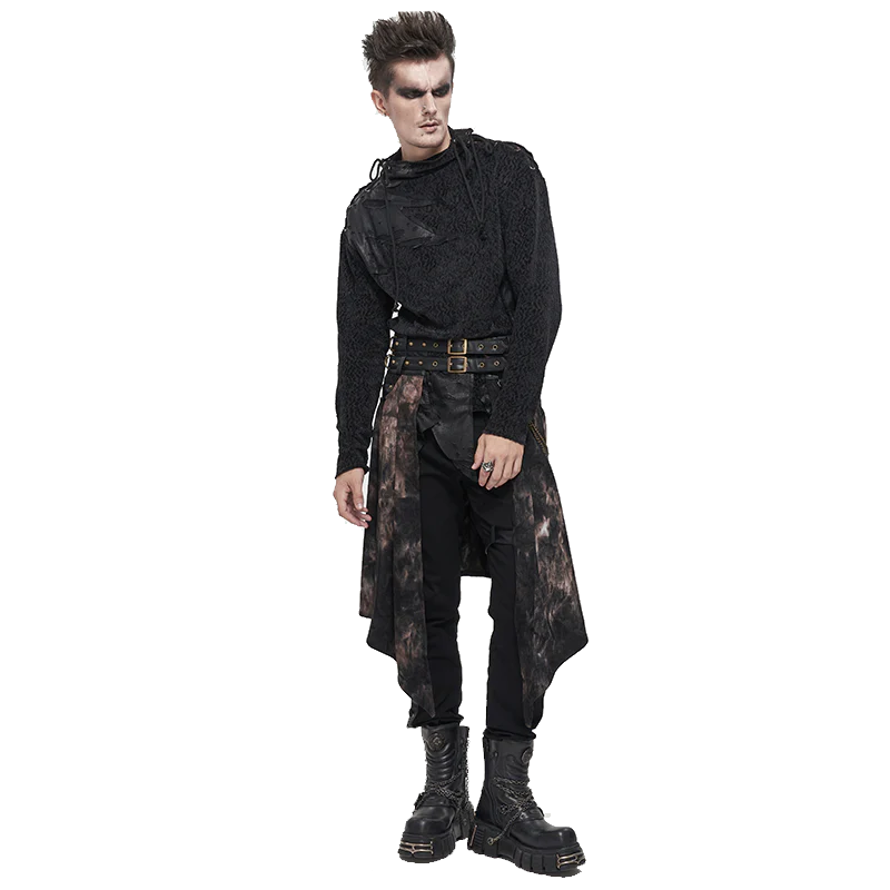 The main material is made of tie-dye corduroy, the waist is spliced with faux leather material, all the auxiliary materials are in bronze, and with the false girdle design. Open pockets on both sides.